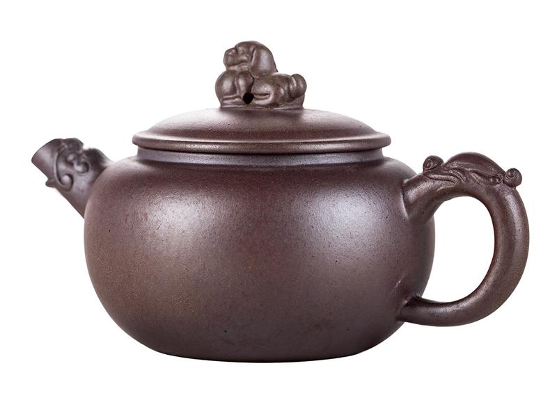 Крышка с декоративным элементом в виде фигурки. Носик и ручка со стилизованными элементами. Производство — мастерская Сю Шунь-вэй.