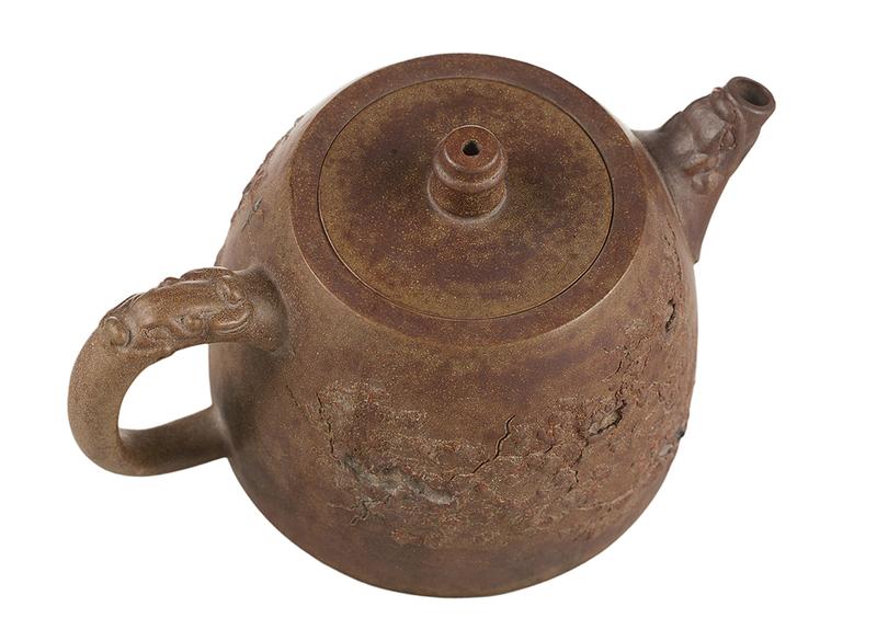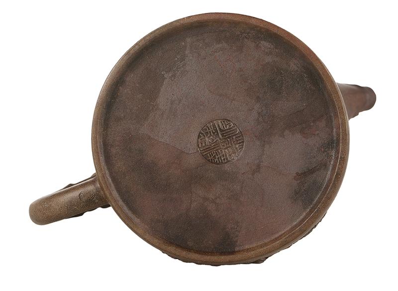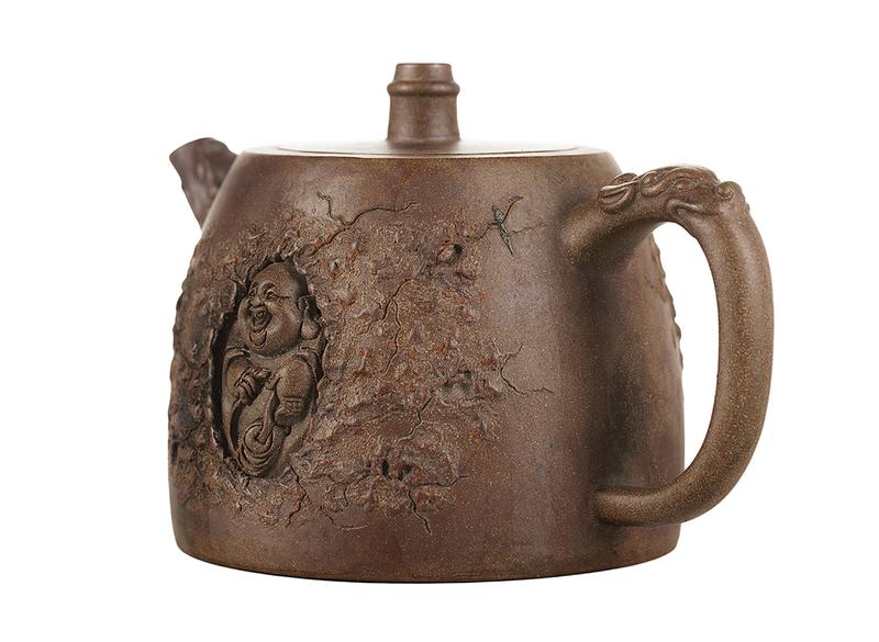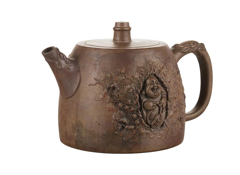 Декор — рельефное изображение Милэфо, традиционного персонажа китайской мифологии. Носик и ручка со стилизованными элементами. Производство — мастерская Сю Шунь-вэй.